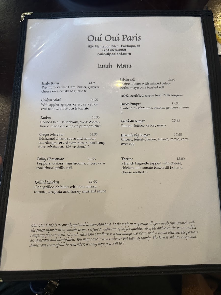 Welcome to Oui Oui Paris, a delightful culinary haven nestled in Fairhope, Alabama. This charming eatery features a carefully curated all-day menu that showcases French-inspired dishes with an unmistakable twist.